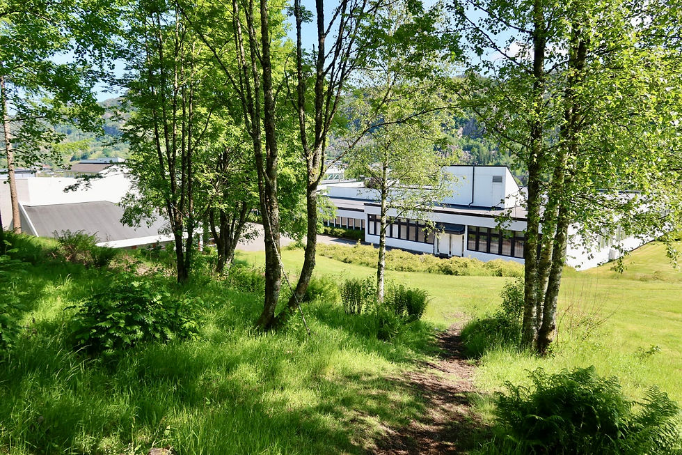 Lundheim Folkehøgskole ligger litt oppe i terrenget, med fin utsikt over hele Moi. Skolen ligger akkurat passe for seg selv – rolig og skjermet, men fortsatt nær alt du trenger. Rundt bygningene strekker det seg store gressplener og åpne områder, med fjell og skog som rammer inn stedet. Det er grønt, stille og luftig – perfekt både for å koble av og for å være aktiv, sosial og ute i naturen.